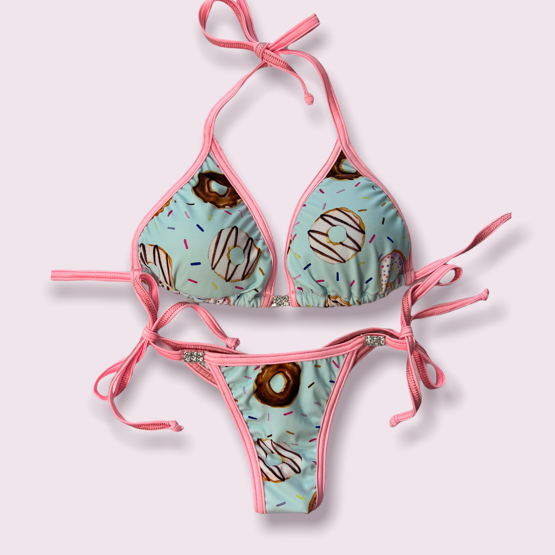 Hand washes separately, cold water, mild detergent. No chlorine bleach. Do not rub fabric together. Lay flat to dry, do not wring. Don’t not iron or dry clean. Bright and dark colors may bleed. Test for chlorine/ sweat sensitivity. The foil finish may fade after wear and washing.