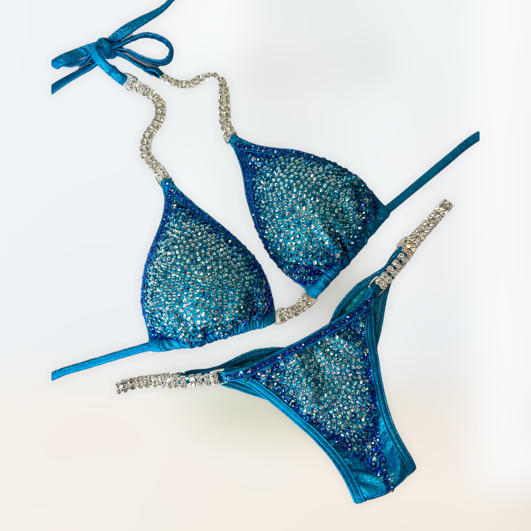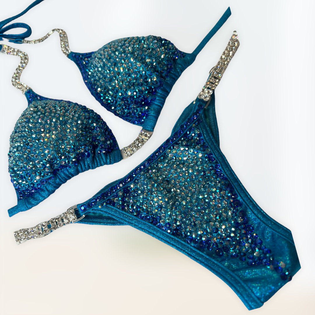 Hand washes separately, cold water, mild detergent. No chlorine bleach. Do not rub fabric together. Lay flat to dry, do not wring. Don’t not iron or dry clean. Bright and dark colors may bleed. Test for chlorine/ sweat sensitivity. The foil finish may fade after wear and washing.