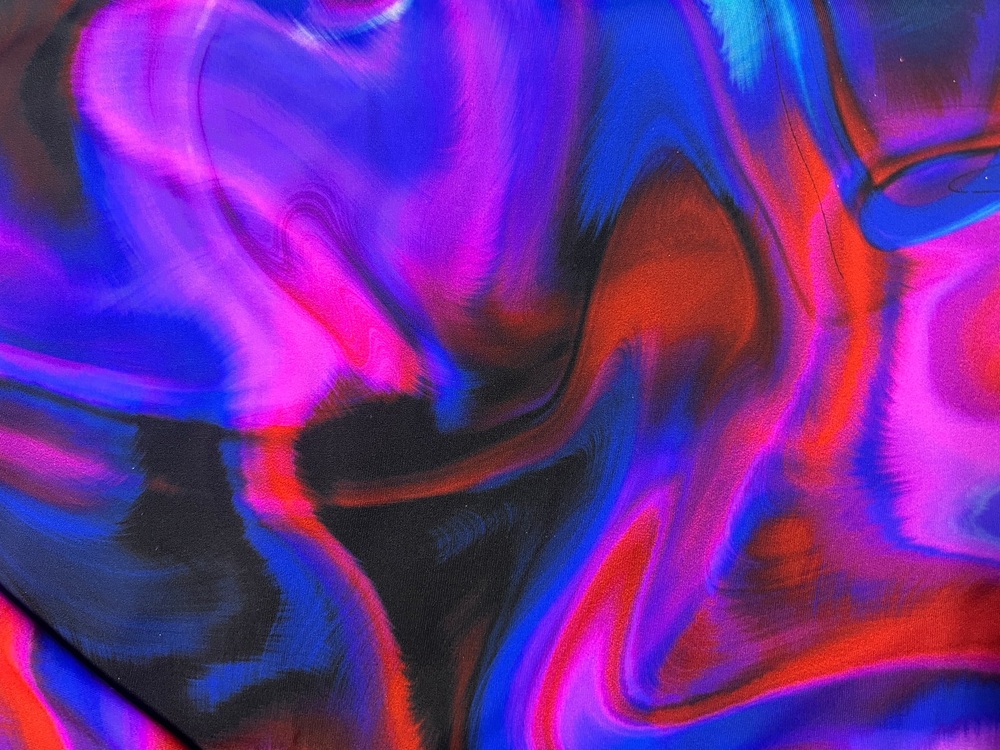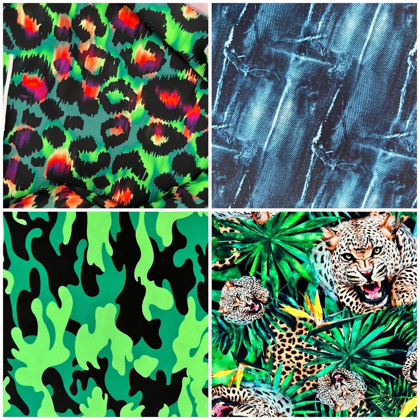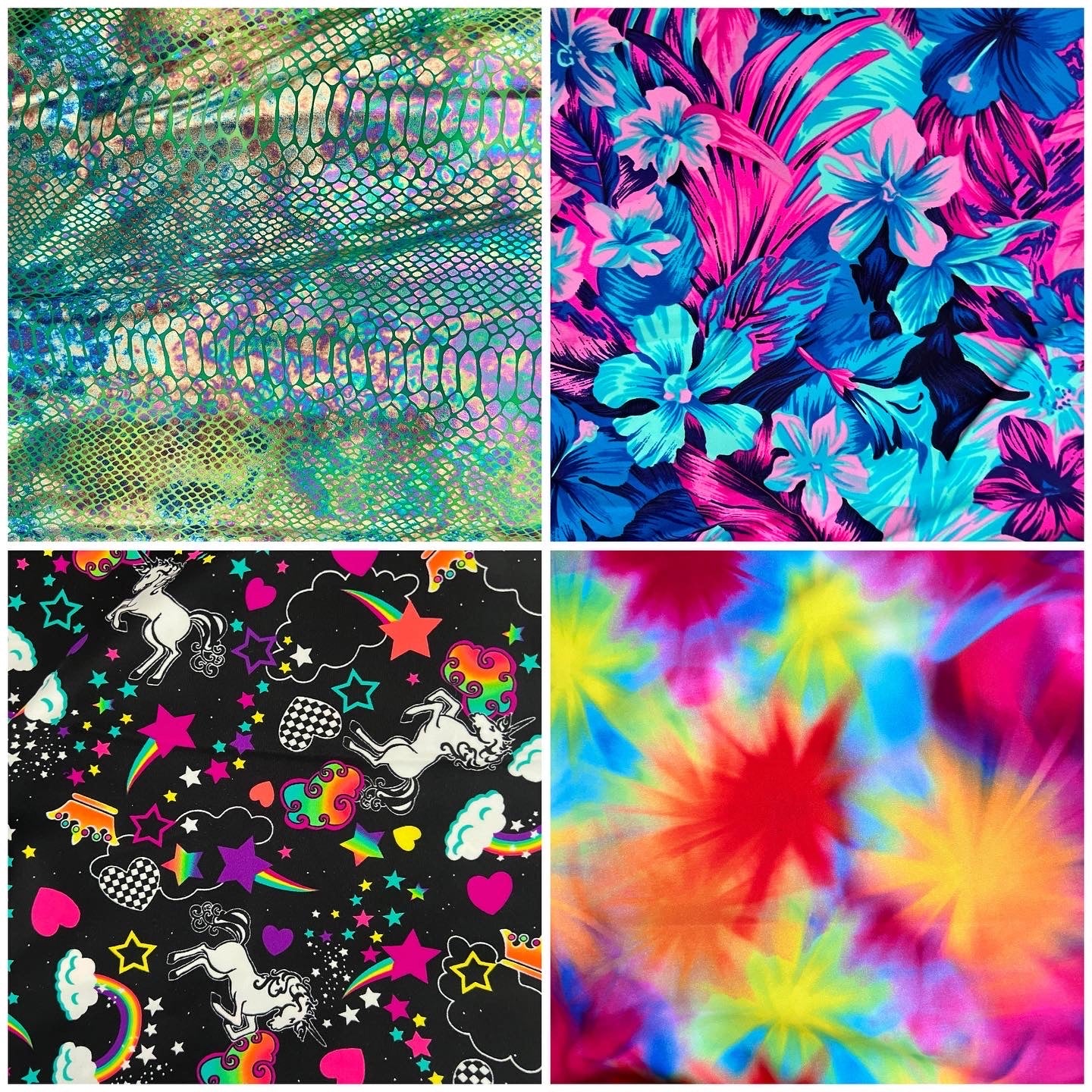 Hand washes separately, cold water, mild detergent. No chlorine bleach. Do not rub fabric together. Lay flat to dry, do not wring. Don’t not iron or dry clean. Bright and dark colors may bleed. Test for chlorine/ sweat sensitivity. The foil finish may fade after wear and washing.