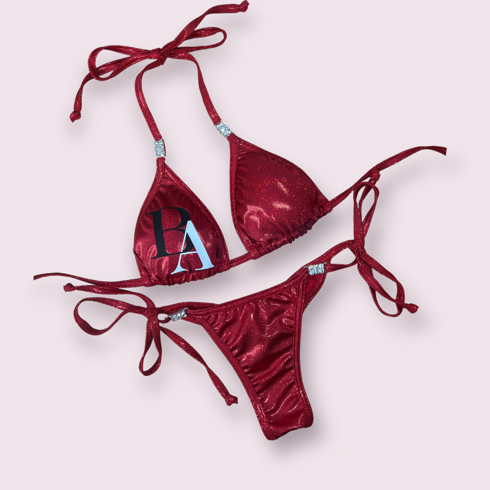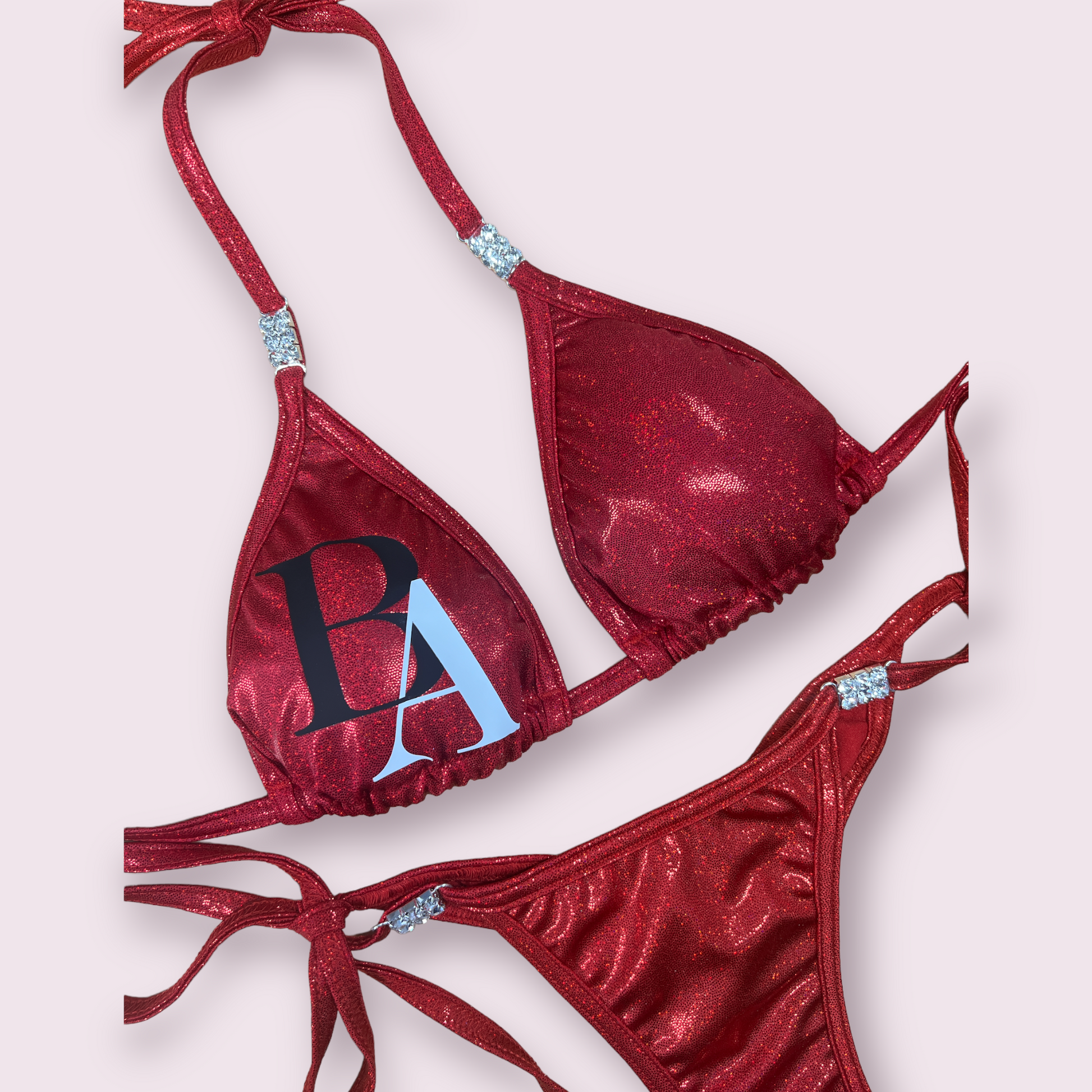 Hand washes separately, cold water, mild detergent. No chlorine bleach. Do not rub fabric together. Lay flat to dry, do not wring. Don’t not iron or dry clean. Bright and dark colors may bleed. Test for chlorine/ sweat sensitivity. The foil finish may fade after wear and washing.