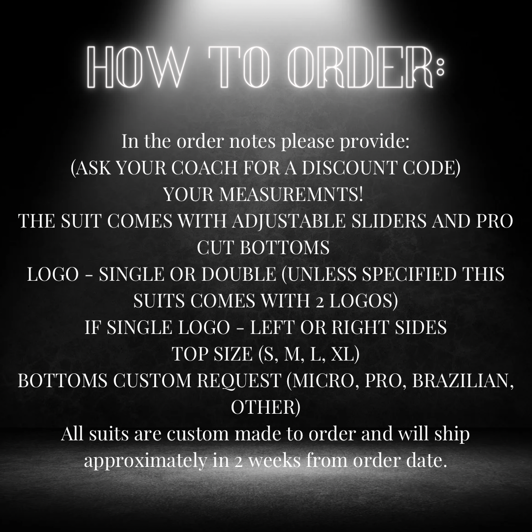All suits are custom made to order and will ship approximately in 2 weeks from order date.